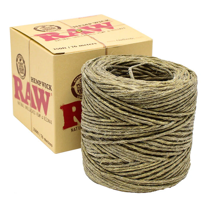 250ft / 76m There are 2 ingredients in RAW Hemp Wick: 1. Natural Unbleached Hemp 2. Beeswax